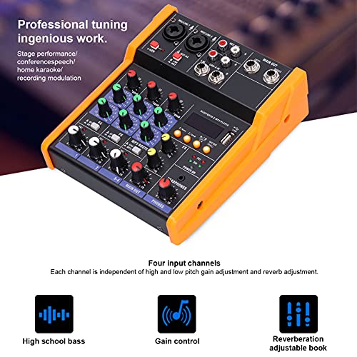 Specification: 4-kanaals Audiomixer, Draagbare Geluidskaartkaart Desktopsysteem Stereo DJ Ruisonderdrukking Draadloze USB-aansluitingsmixer