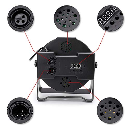 Meerdere lichteffecten: de led-par-discolampen kunnen eenvoudig via dmx worden aangestuurd. Je kunt probleemloos lichteffecten zoals RGBW-enkele kleur of gemengde kleur, geluid geactiveerd, stroboscoop, fade, sprongwissel, geleidelijke wisseling, statische kleuren en snelheid instellen.