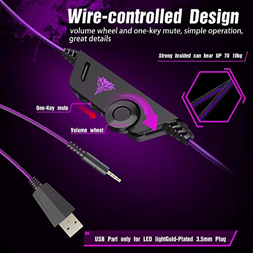 Specification: Bengoo Stereo Gaming Headset voor PS4, PC, Xbox One Controller, Noise Cancelling Over Ear Hoofdtelefoon met Microfoon, LED Licht, Bass Surround, Zacht Geheugen Paars