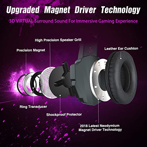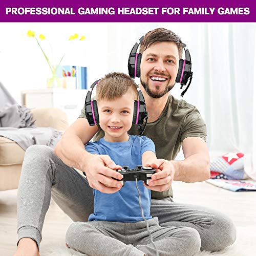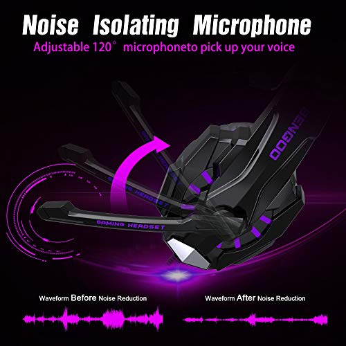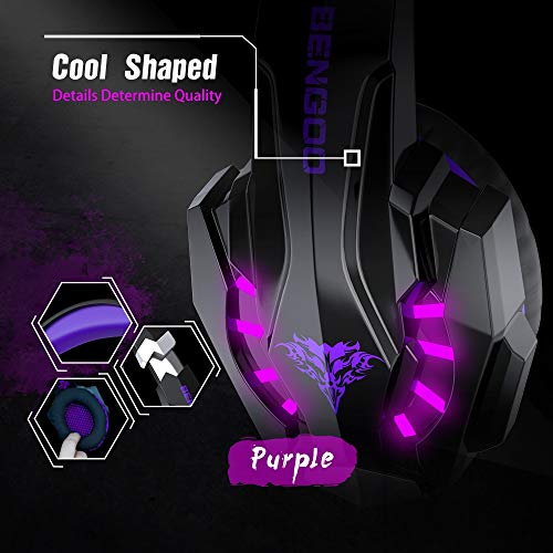 Bengoo Stereo Gaming Headset voor PS4, PC, Xbox One Controller, Noise Cancelling Over Ear Hoofdtelefoon met Microfoon, LED Licht, Bass Surround, Zacht Geheugen Paars