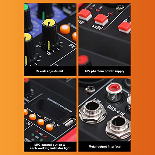【Draagbare USB-mixer】 De mixer is uitgerust met een USB-aansluiting, die direct in de U-schijf kan worden gestoken om muziek af te spelen, die eenvoudig kan worden aangesloten en afgespeeld.