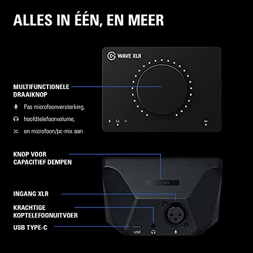 Elgato Wave XLR – Microfooninterface, XLR/USB-C, anti-clipping, 75 dB versterker, fantoomvoe-ding, directe monitor, aanraakdemping, Wave Link-app voor digitaal mixen
