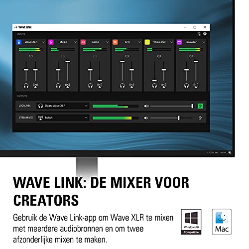 Gebruik de Wave Link-app om Wave XLR te mixen met meerdere audiobronnen en om twee afzonderlijke mixen te maken