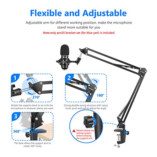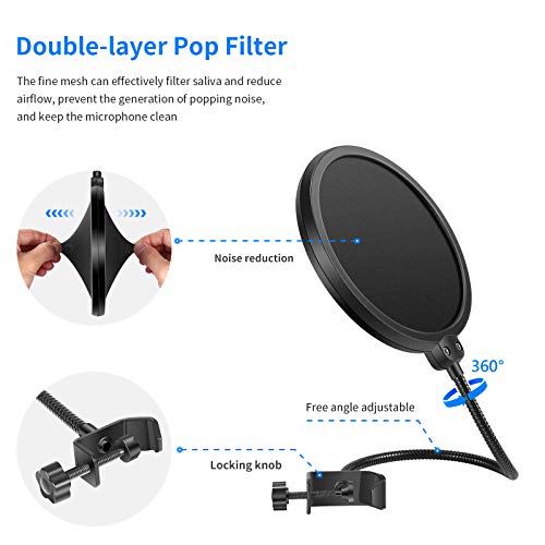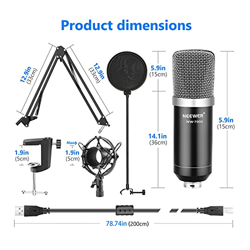Specification: Neewer USB-microfoon voor Windows en Mac met ophangschaararmstandaard, Shock Mount, popfilter, USB-kabel en tafelbevestigingsklem set voor radio en geluidsopname (zwart)