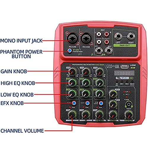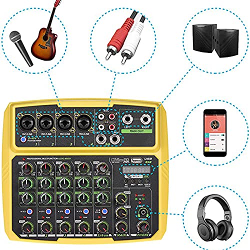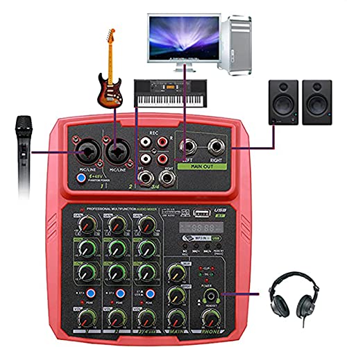 Specification: Sound Mixer Board, Draagbare 6 Kanalen Audio Mixer Usb Mengconsole Ondersteunt Bt-verbinding Met Geluidskaart Ingebouwde 48v Phantom Power Voor Opnamestudio(Color:Groente)