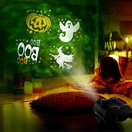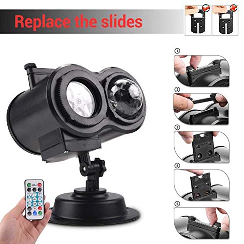 DOUBLE PROJECTIES – De projectorlamp is met dubbel projectie-effect, een voor RGBW watergolf rimpel effect en een andere voor patronen beeldprojectie. De vloeiende kleur watergolf rimpel kan projecteren op muren, plafonds, binnenplaatsen etc met prachtige kleuren. De lichtprojector wordt gecombineerd met 16 verschillende dia’s, sneeuwvlokken, david hert, paaseieren, kerstman, schedel, oogbol. om de sfeer en plezier te verbeteren.