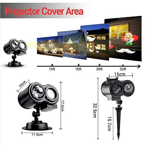Specification: XUE-BAI Halloween Kerst Projector Lights, LED Dubbele Projector Lamp 2-in-1 met Roterende Sneeuwvlok Sneeuwval &Remote Timer &Water Golf, Waterdichte Lichtprojector voor Outdoor Nachtlampje
