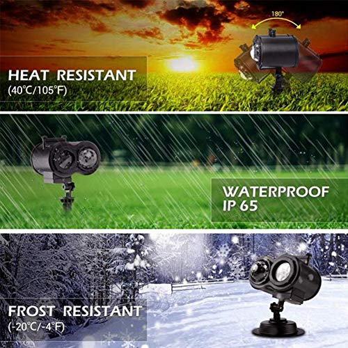 HEAT DISSIPATION&ANTI-FOGGING & 100% WATEROF – De kersteffectlamp heeft een ingebouwde ventilator voor warmteafvoer en anti-mist. De tuinprojectieafstand van tuinlichtprojector is 5-8m (197-315 “), het projectiegebied is 30-50 vierkante meter.IP44 WATEROF